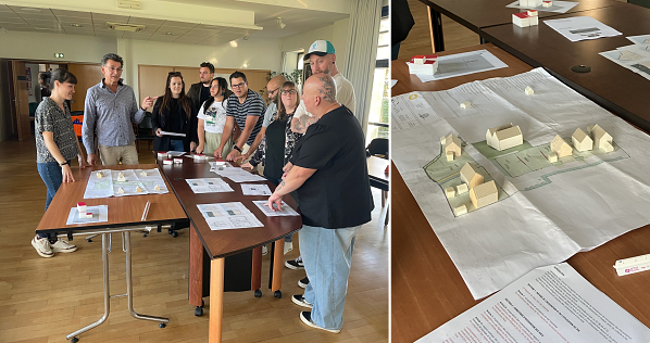 RÉUNION DE TRAVAIL AVEC LES FUTURS HABITANTS - Au Conquet, un temps de réflexion commun a été proposé aux futurs habitants du quartier "actifs et jeunes ménages" qui va voir le jour, rue Schuman. Des maisons Koad Ha Liviou y seront construites et adaptées, selon leur modèle, à chaque foyer.